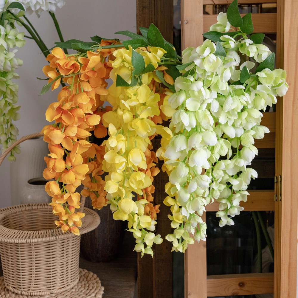 Artificial Wisteria Silk Flowers Hanging Plant - Orange