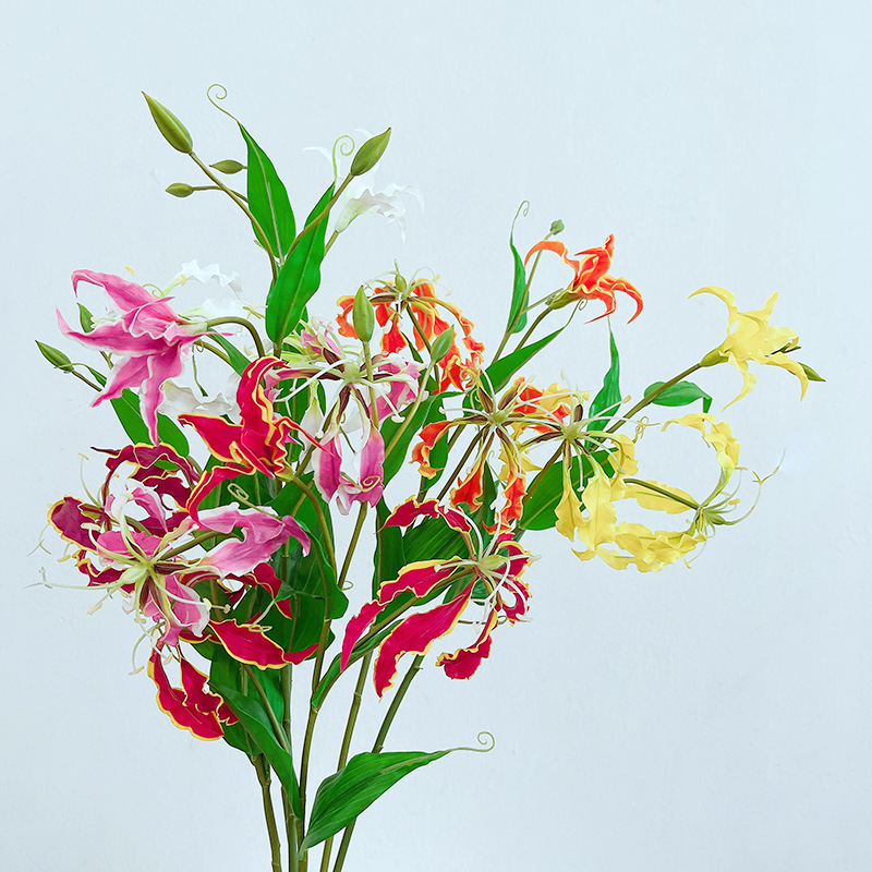 Gloriosa superba Artificial Lily Flower Stems - Fuchsia