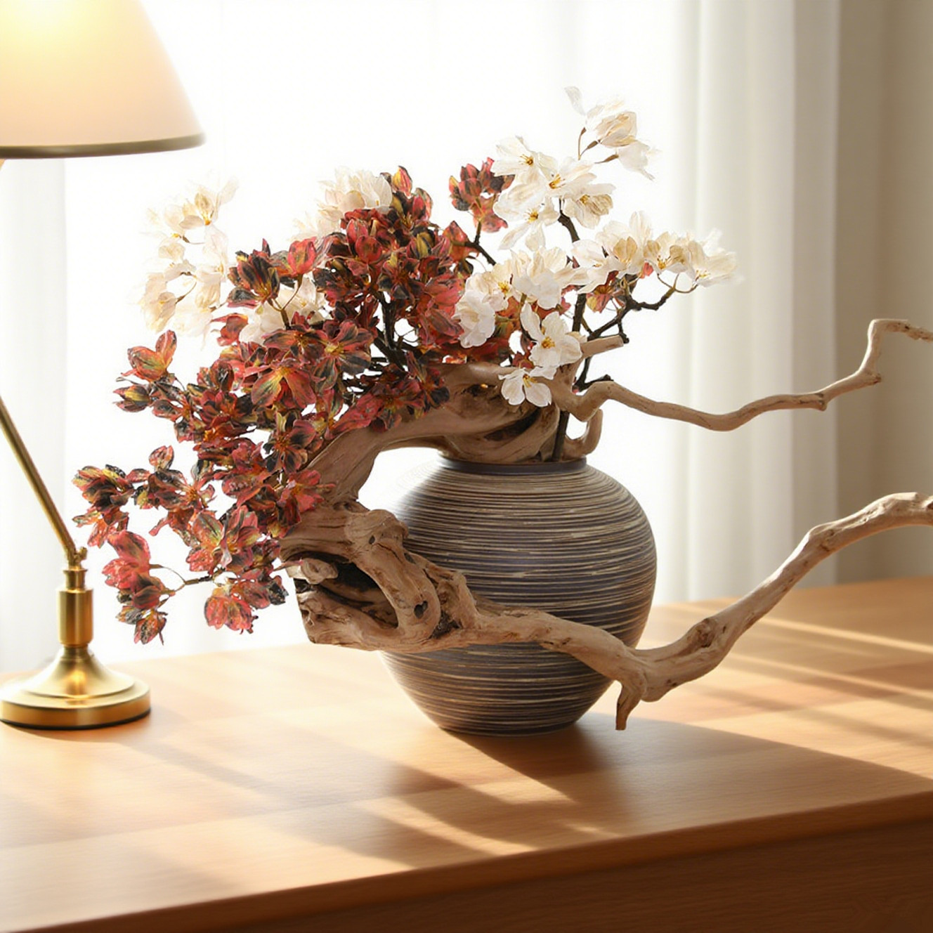Real Touch Silk Plum Blossom Artificial Cherry Flowers - Dark Red