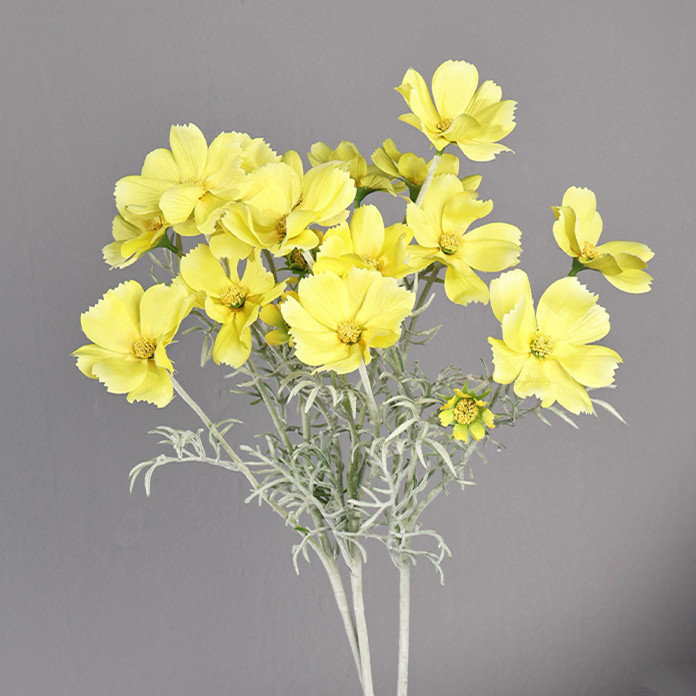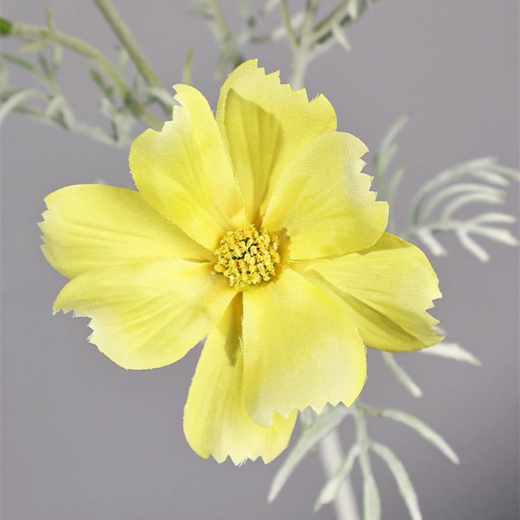Artificial Cosmos Silk Wild Flower with Flocking - Yellow
