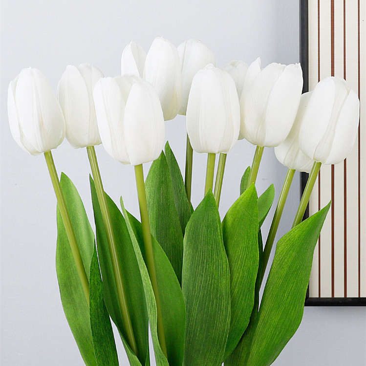 Artificial Tulip PU Faux Flowers Real Touch - White