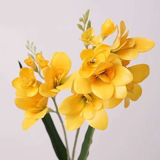 Lifelike artificial freesia flowers with real touch, upward-facing blooms, and full-size leaves.