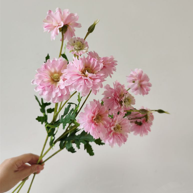 Silk Zinnia Elegans Faux Flowers Stems - Blush Pink
