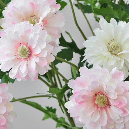 Silk Zinnia Elegans Faux Flowers Stems - Light Pink