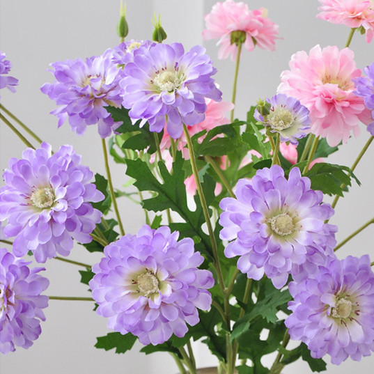 Silk Zinnia Elegans Faux Flowers Stems - Purple
