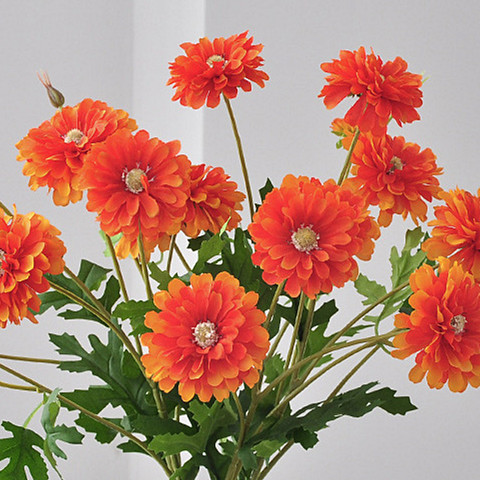 Silk Zinnia Elegans Faux Flowers Stems - Sunset