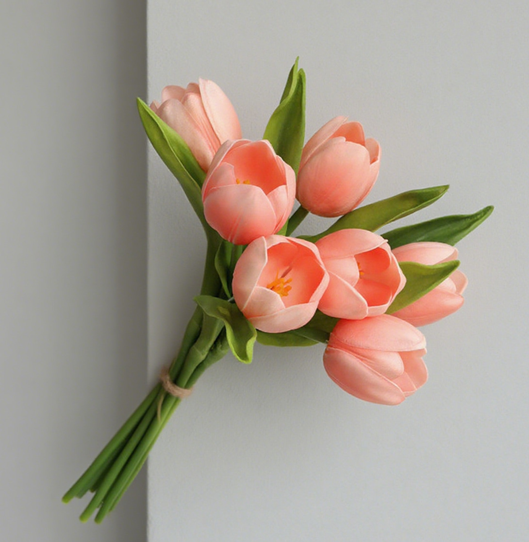 High Quality Tulip PU Faux Flowers Real Touch - Salmon Pink