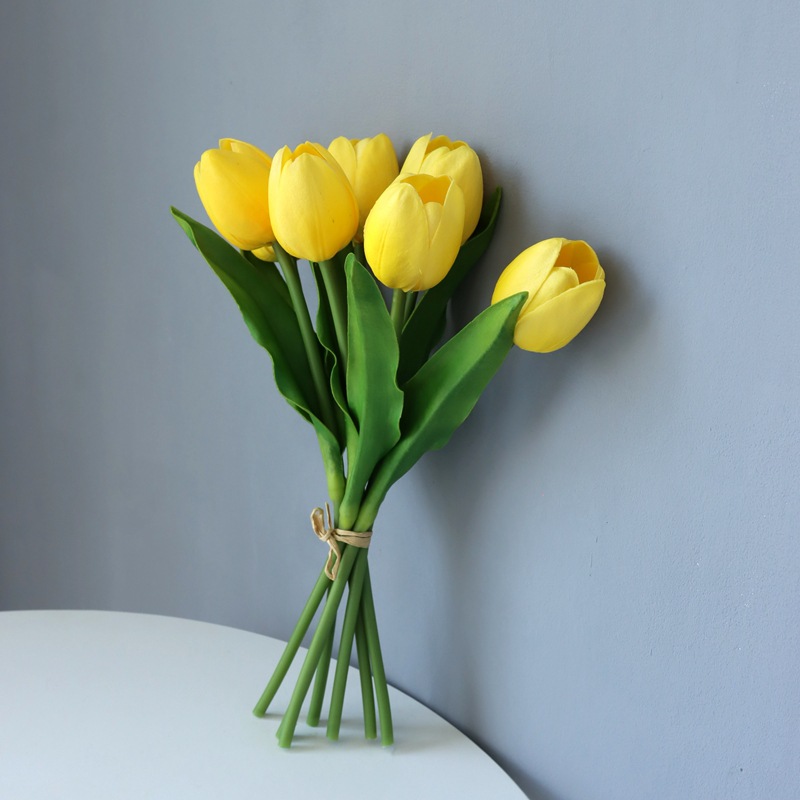 High Quality Tulip PU Faux Flowers Real Touch - Yellow