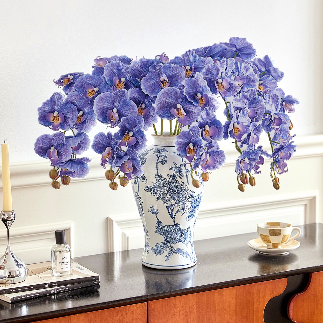 Size:the real touch orchid stems total length 99cm/38.9 inches, 9 petals and 3 buds, the diameter of petals about 10cm/3.94 inches.