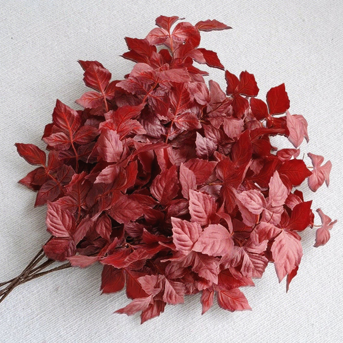 Artificial Corylus Tree Branches Fall Leaves Autumn Greenery - Wine Red