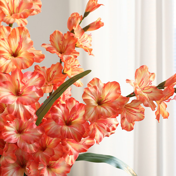 Vivid Colors: These long stem artificial gladiolus flowers come in beautiful shades of pink, white, orange, purple to add vibrant pops of color to any indoor space.