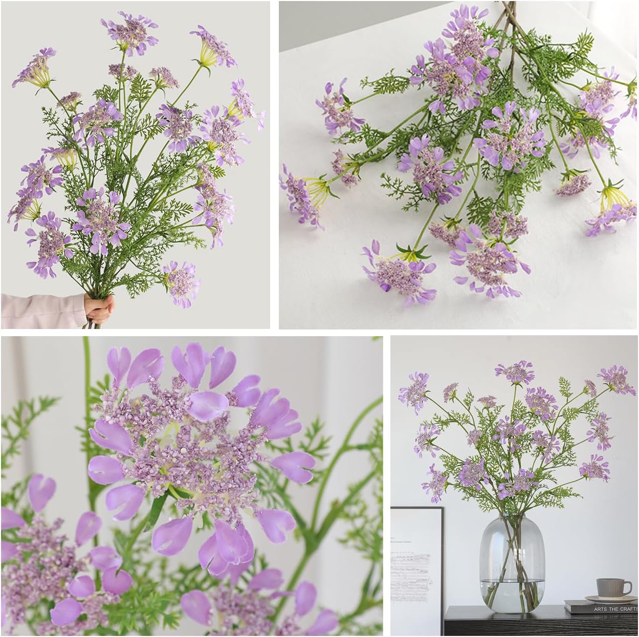 Long Artificial Orlaya Lace Flowers with Plastic Stems - Light Purple